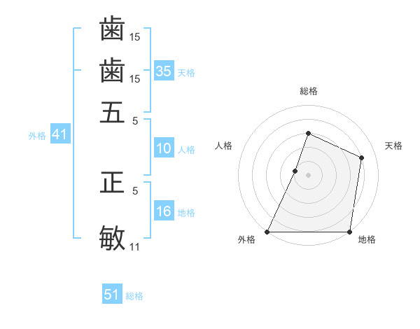歯歯五 正敏さんを姓名の画数から五運を鑑定