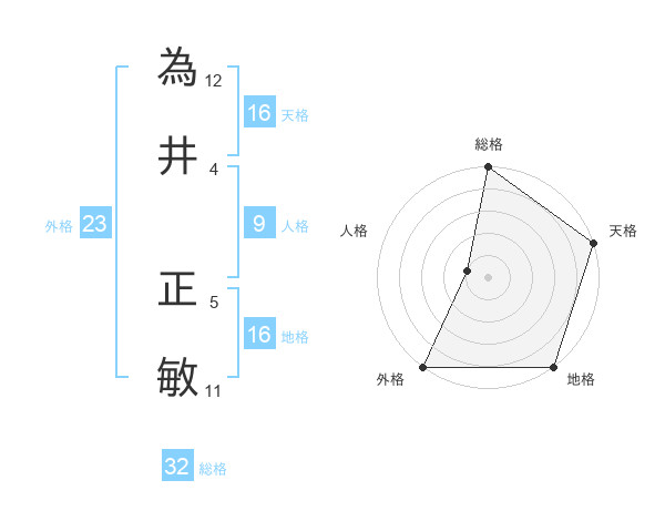 為井 正敏さんの総格は32画の5点!