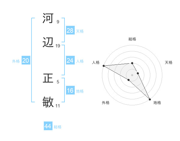 河辺 正敏さんの総格は44画の2点!