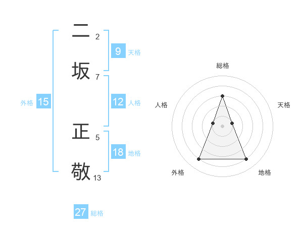 二坂 正敬さんを姓名の画数から五運を鑑定
