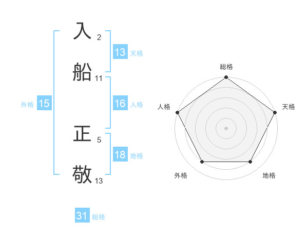 入船 正敬さんの総格は31画の5点!
