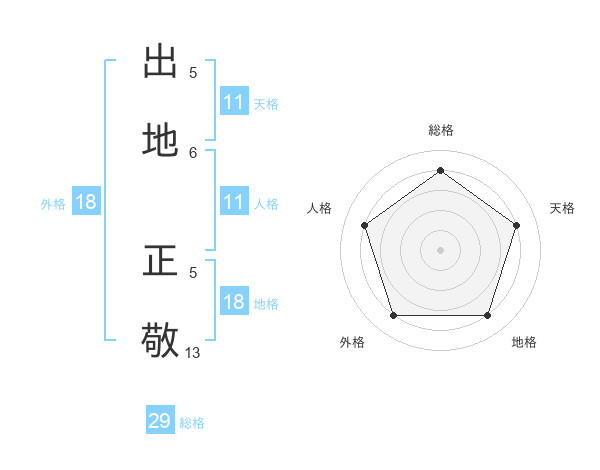 出地 正敬さんの総格は29画の4点!