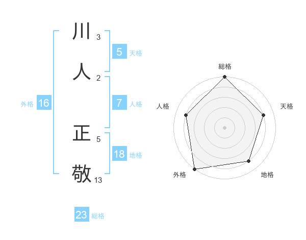 川人 正敬さんの総格は23画の5点!