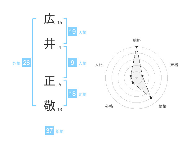 広井 正敬さんの総格は37画の5点!
