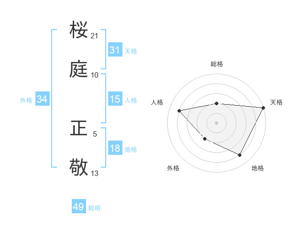 桜庭 正敬さんを姓名の画数から五運を鑑定