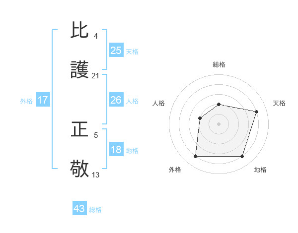 比護 正敬さんの総格は43画の2点!