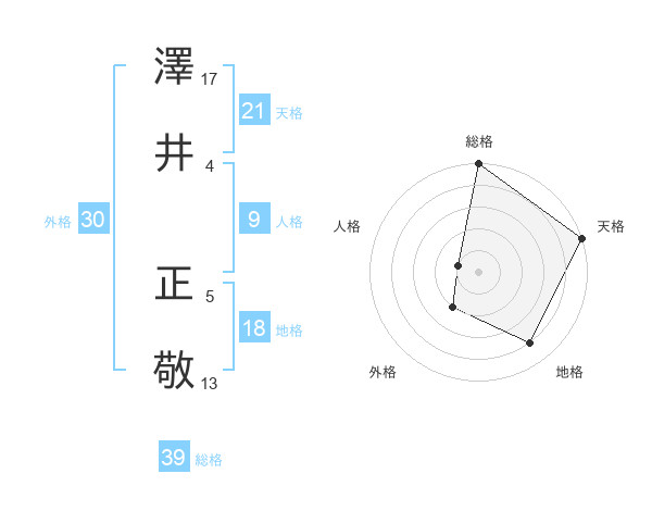 澤井 正敬さんの総格は39画の5点!