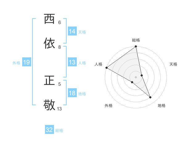 西依 正敬さんの総格は32画の5点!