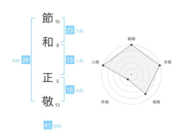 節和 正敬さんの天格は23画の5点!