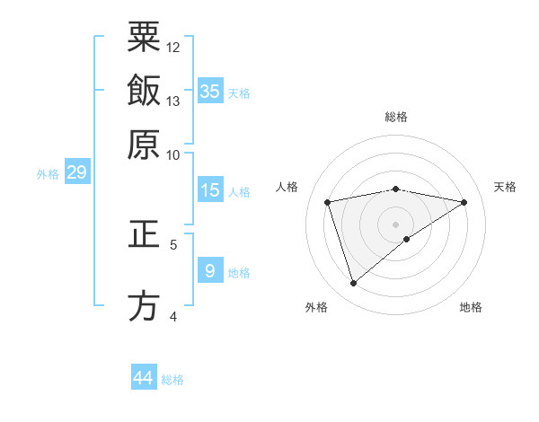 粟飯原 正方さんの総格は44画の2点!