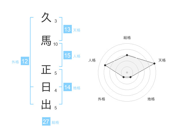 久馬 正日出さんの天格は13画の5点!