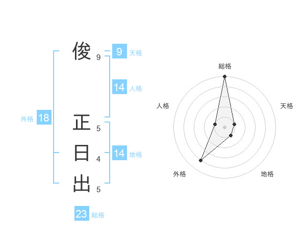 俊 正日出さんの総格は23画の5点!
