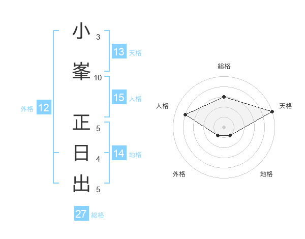 小峯 正日出さんを姓名の画数から五運を鑑定