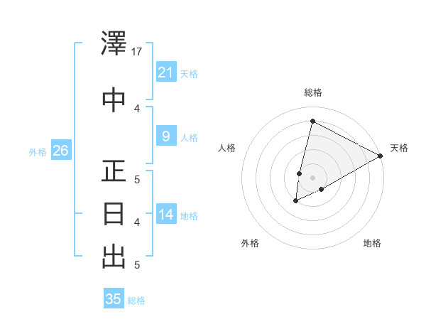 澤中 正日出さんを姓名の画数から五運を鑑定