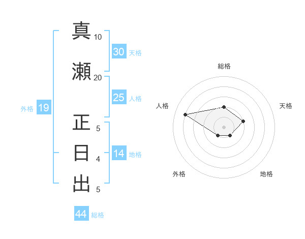 真瀬 正日出さんを姓名の画数から五運を鑑定