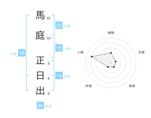 馬庭 正日出さんを姓名の画数から五運を鑑定