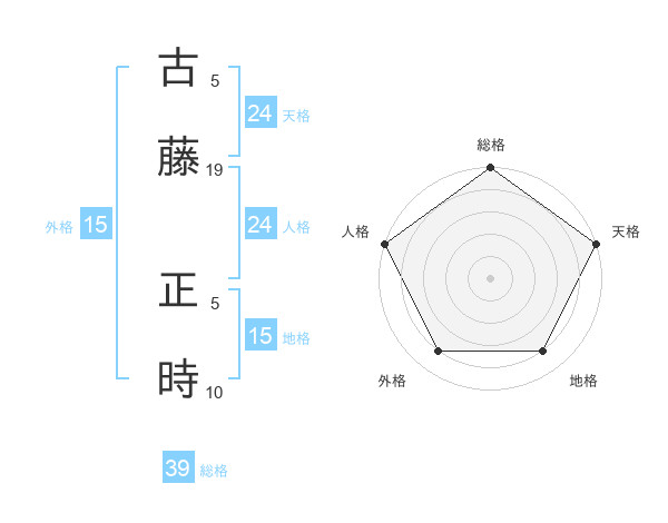 古藤 正時さんの総格は39画の5点!