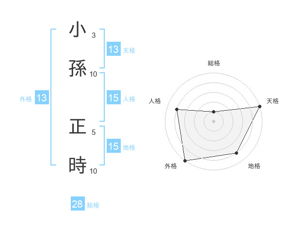 小孫 正時さんの外格は13画の5点!