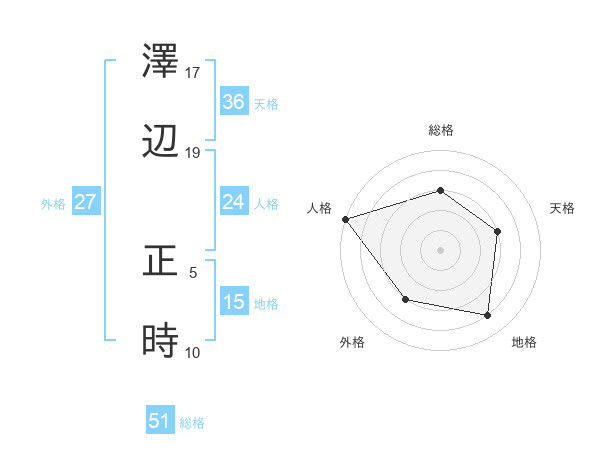 澤辺 正時さんの総格は51画の3点!