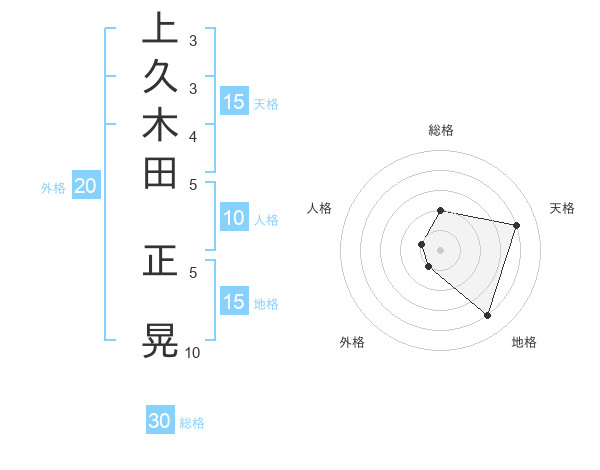 上久木田 正晃さんを姓名の画数から五運を鑑定