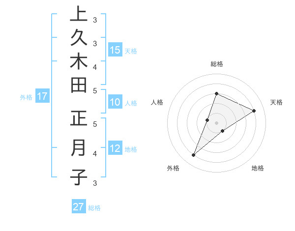 上久木田 正月子さんを姓名の画数から五運を鑑定