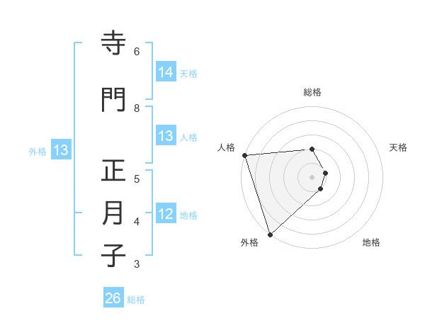 寺門 正月子さんの外格は13画の5点!