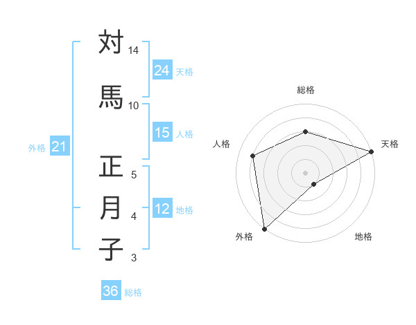 対馬 正月子さんの天格は24画の5点!
