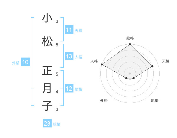 小松 正月子さんの総格は23画の5点!