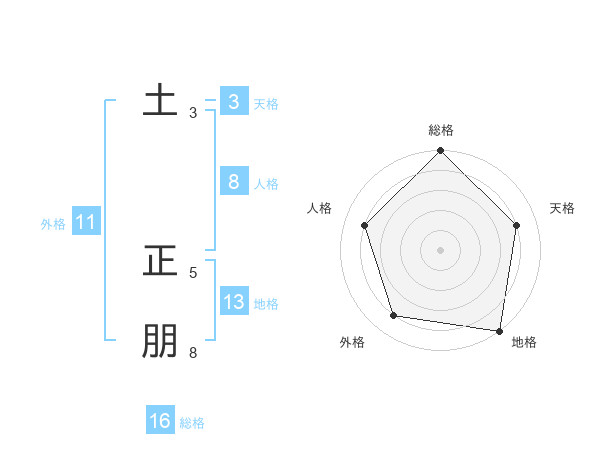 土 正朋さんの総格は16画の5点!