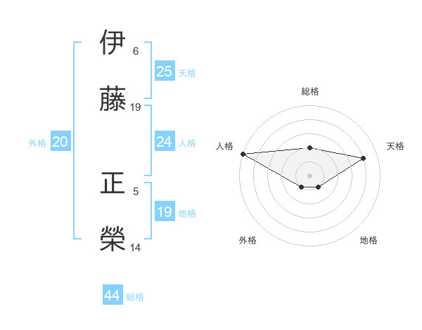 伊藤 正榮さんの総格は44画の2点!