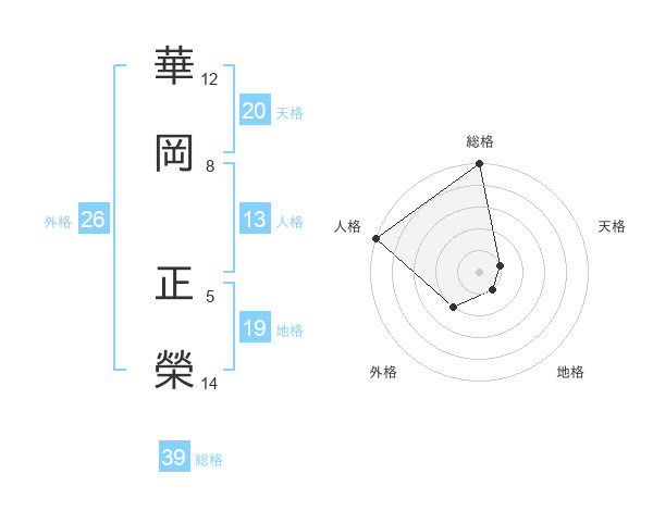 華岡 正榮さんの総格は39画の5点