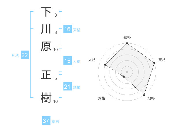 下川原 正樹さんを姓名の画数から五運を鑑定