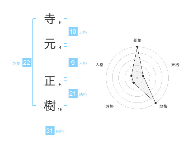寺元 正樹さんを姓名の画数から五運を鑑定