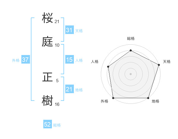 桜庭 正樹さんを姓名の画数から五運を鑑定