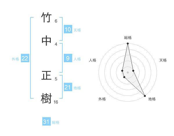 竹中 正樹さんの総格は31画の5点!