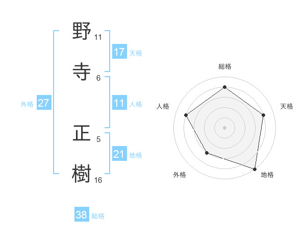 野寺 正樹さんの総格は38画の4点!