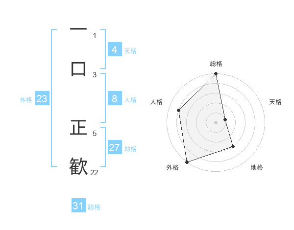 一口 正歓さんの外格は23画の5点!