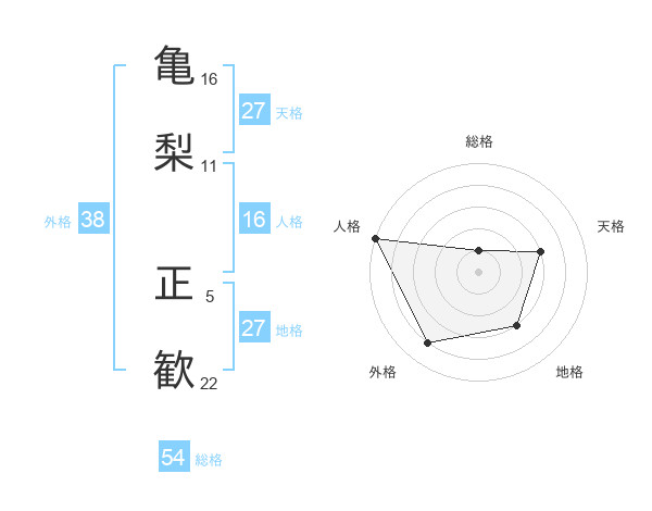 亀梨 正歓さんの人格は16画の5点!
