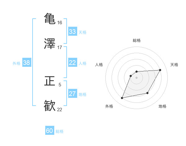 亀澤 正歓さんの総格は60画の1点!