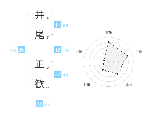 井尾 正歓さんの総格は38画の4点!