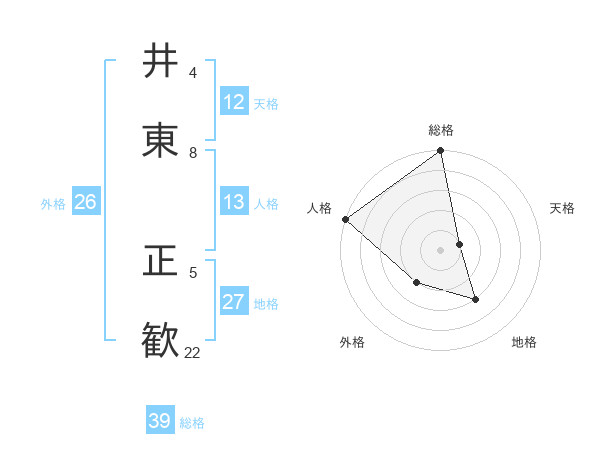 井東 正歓さんの総格は39画の5点!