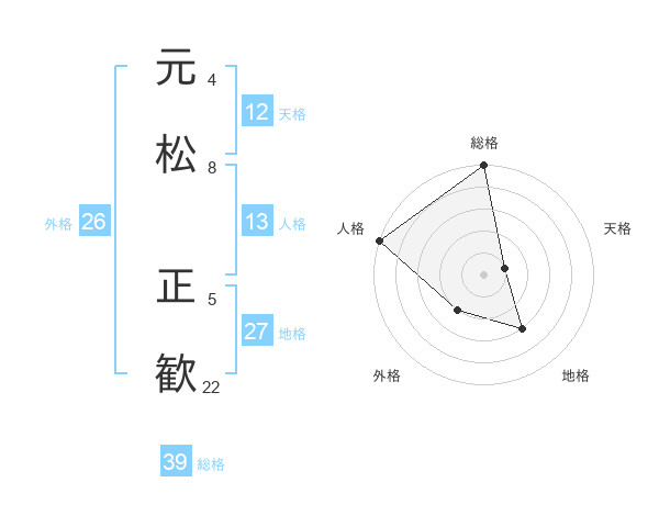 元松 正歓さんの総格は39画の5点!