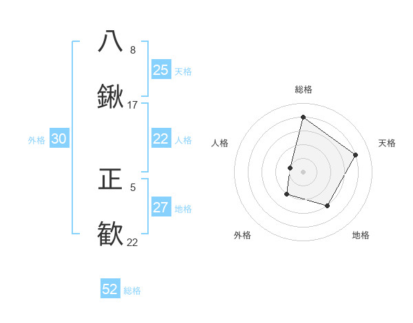 八鍬 正歓さんの総格は52画の4点!