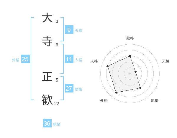 大寺 正歓さんの外格は25画の4点!
