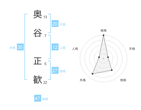 奥谷 正歓さんの総格は47画の5点!