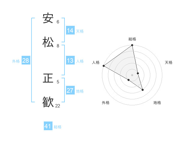 安松 正歓さんの総格は41画の5点