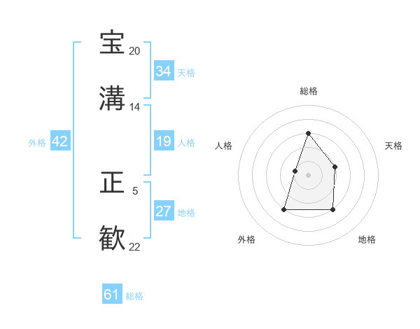 宝溝 正歓さんを姓名の画数から五運を鑑定