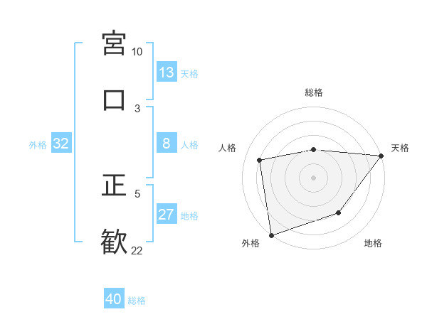 宮口 正歓さんの天格は13画の5点!