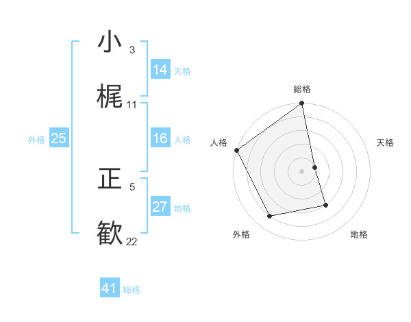 小梶 正歓さんを姓名の画数から五運を鑑定