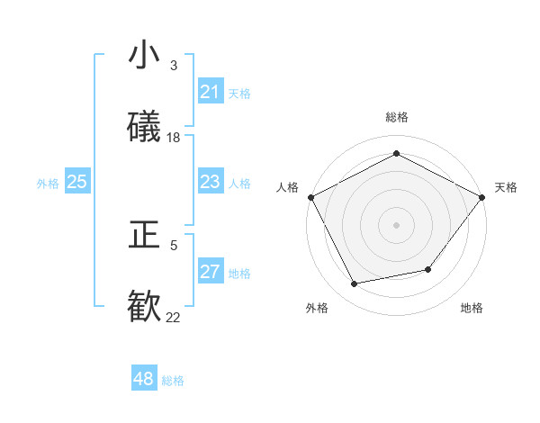 小礒 正歓さんの外格は25画の4点!